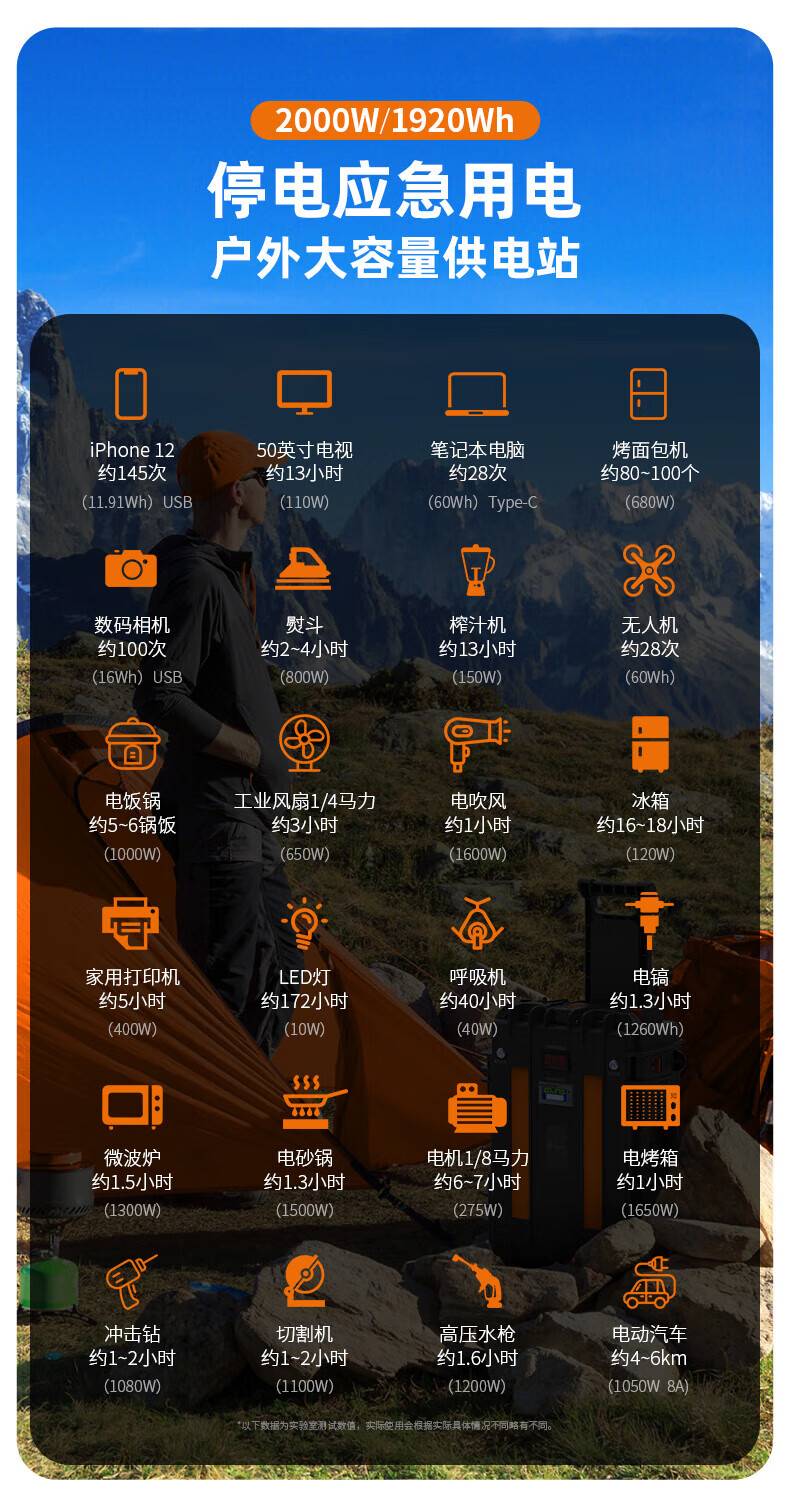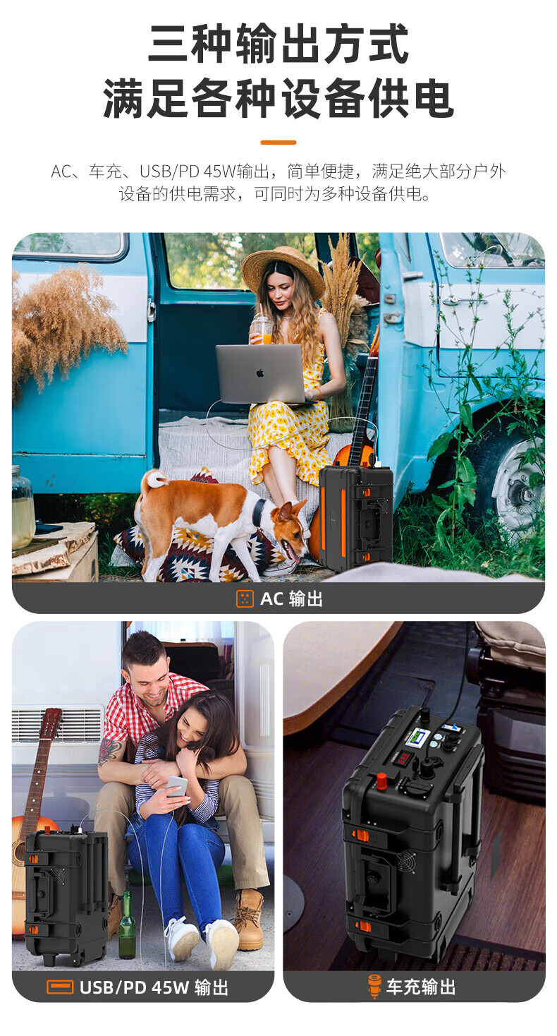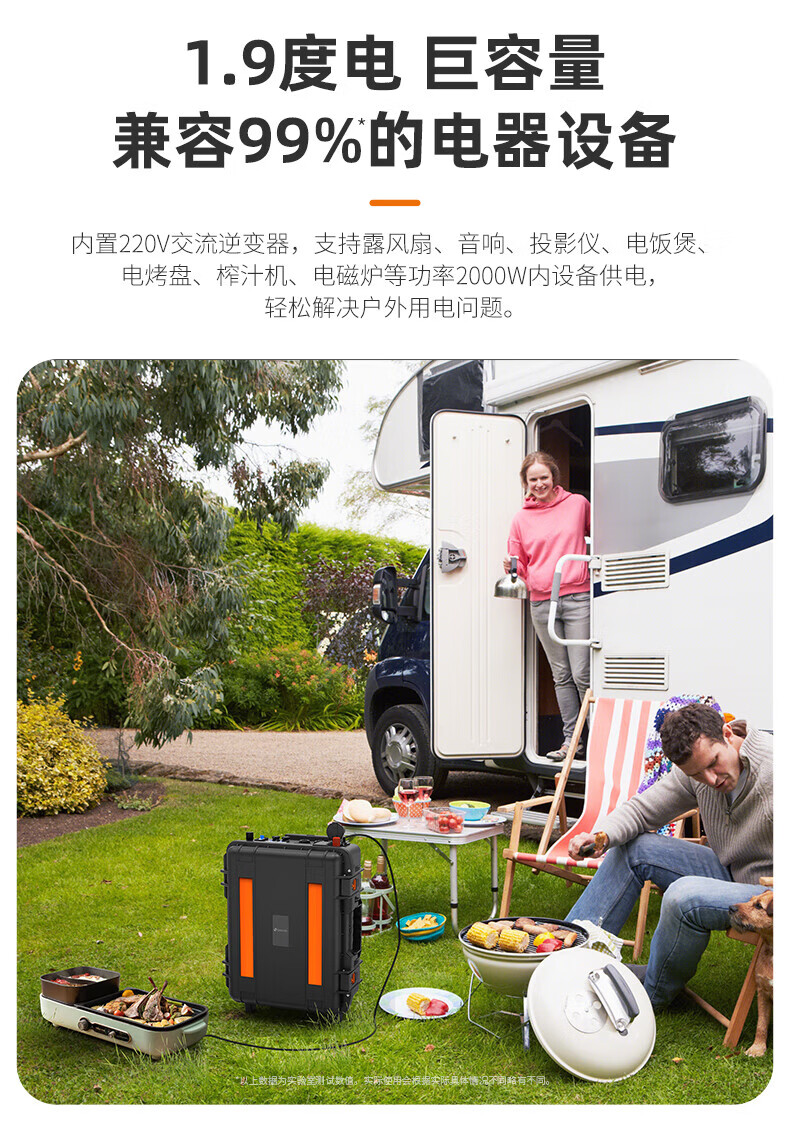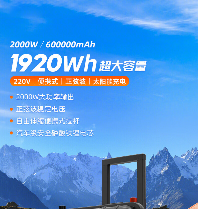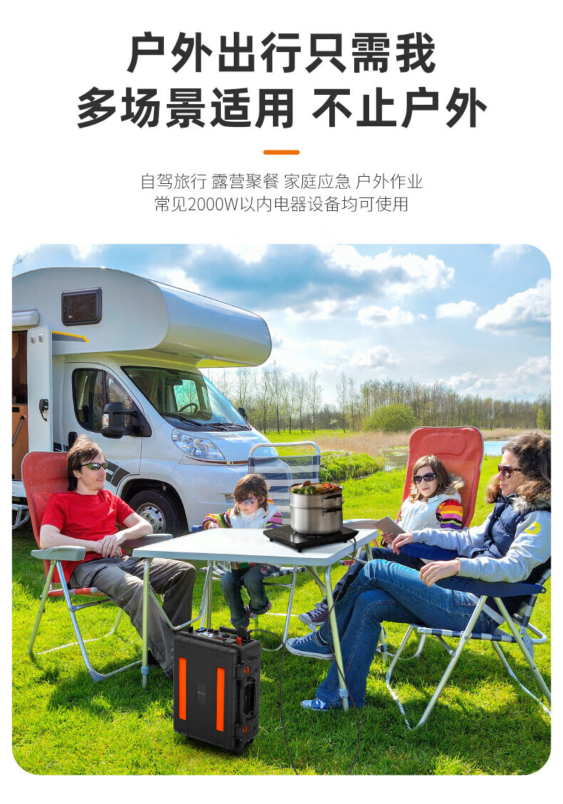 八方盾2000W便携式户外太阳能光伏储能大容量移动电源 黑色